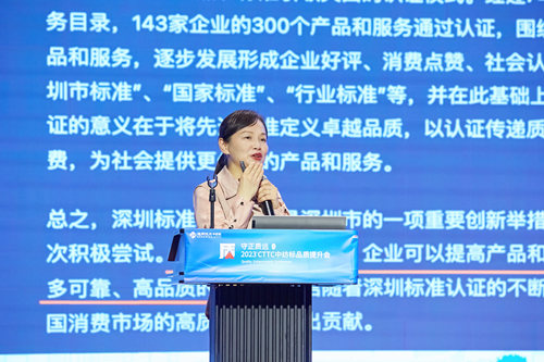 “標(biāo)準(zhǔn)決定質(zhì)量,有什么樣的標(biāo)準(zhǔn)就有什么樣的質(zhì)量,只有高標(biāo)準(zhǔn)才有高質(zhì)量。”深圳市卓越績效管理促進會(深圳標(biāo)準(zhǔn)認證聯(lián)盟秘書處)副秘書長王瑩女士以《深圳標(biāo)準(zhǔn)認證政策宣貫》為題,對深圳標(biāo)準(zhǔn)認證概念進行了解讀,從幾大行業(yè)領(lǐng)域?qū)φJ證成果進行展示分享,并重點介紹了深圳標(biāo)準(zhǔn)認證的申報指南。以認證傳遞質(zhì)量信任,發(fā)揮品牌引導(dǎo),促進品質(zhì)消費。